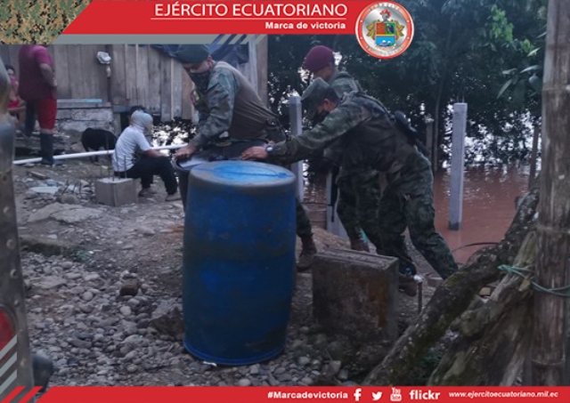 Las Fuerzas Armadas, a través de la Brigada de Selva N° 19 Napo, decomisaron 110 galones de gasolina que iban a ser transportados en una embarcación por el río San Miguel, sector...