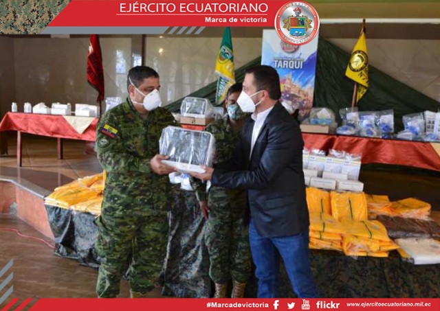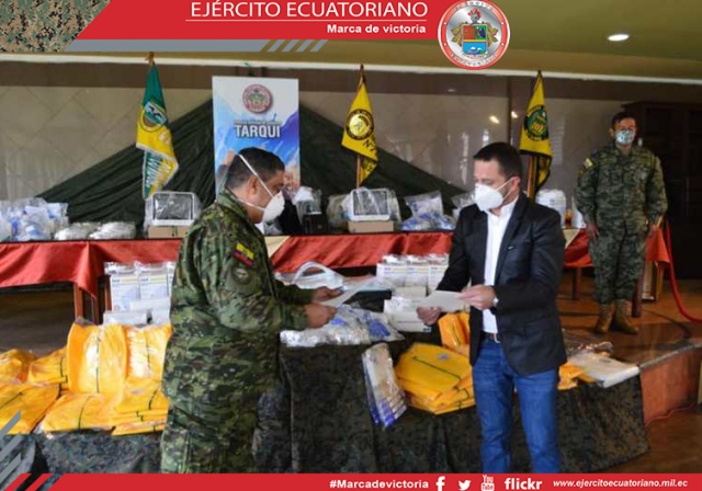 El general de brigada Santiago Almeida Córdoba, comandante de la Tercera División de Ejército Tarqui, recibió por parte del ingeniero José Jara, representante de la Fundación...