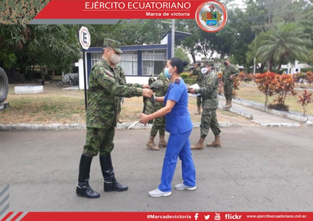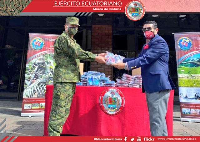 Las Fuerzas Armadas, por intermedio del Ejército Ecuatoriano, recibieron la donación de 500 mascarillas entregadas por los miembros de la agrupación @GeNteRojaEc, conformada por...