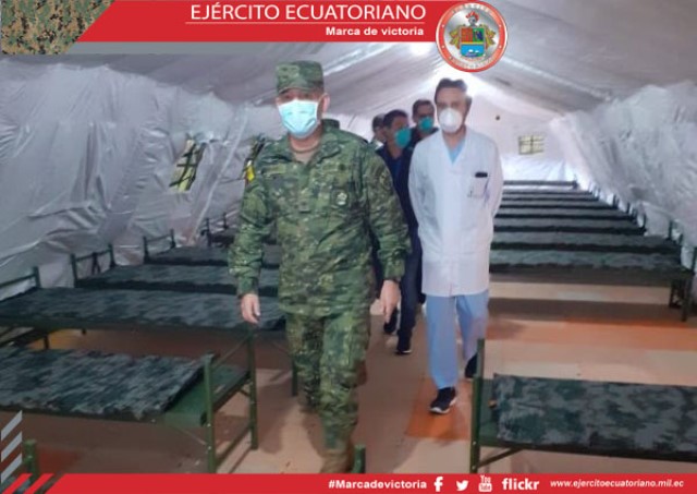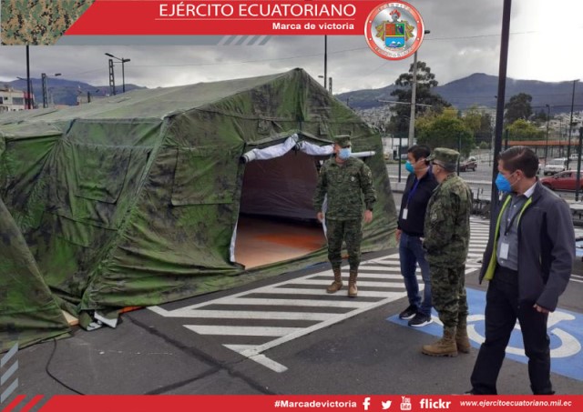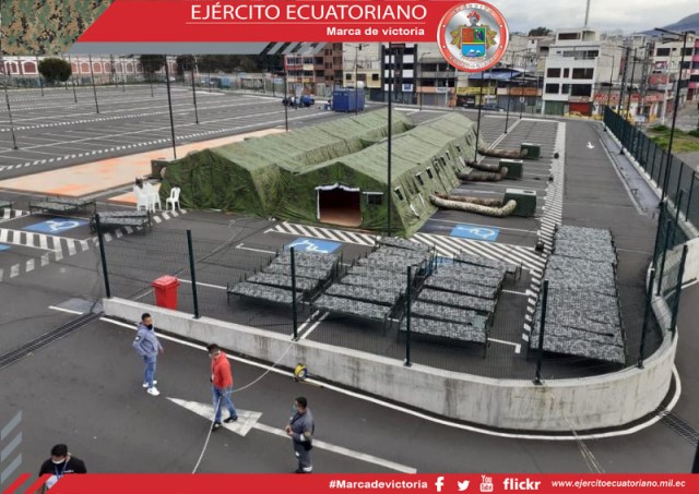 La noche del jueves 7 de mayo personal de las Fuerzas Armadas instalaron 5 carpas climatizadas en los parqueaderos del Hospital del IESS Quito Sur, con la finalidad de ampliar la...