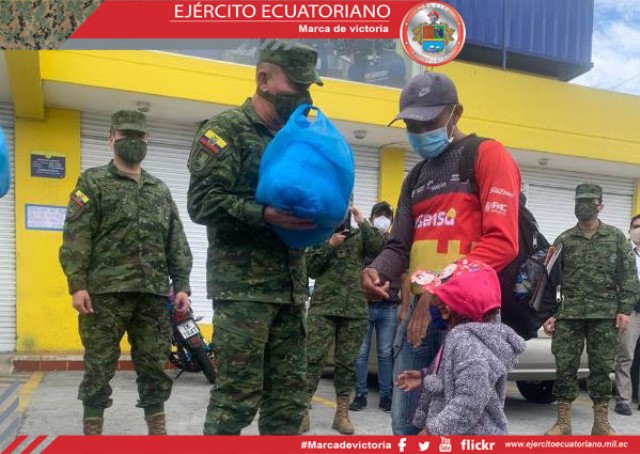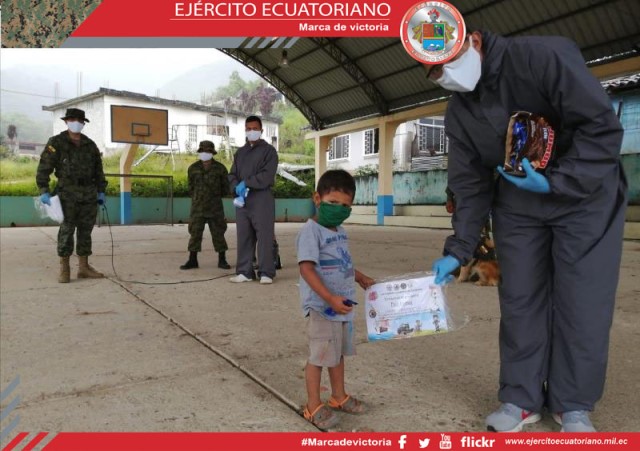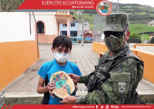 Los soldados de Fuerzas Armadas dejaron por un momento sus labores en cumplimiento del estado de excepción para dar alegría a los más pequeños. En Zamora, personal del Batallón...