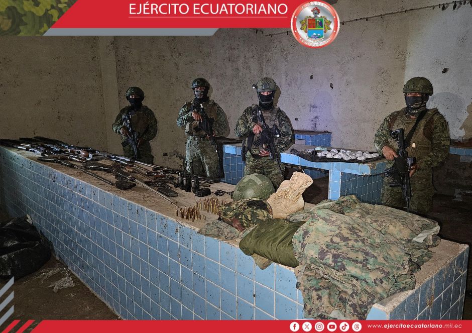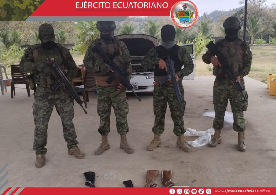 Personal militar del Grupo de Fuerzas Especiales N.° 25 "Base Sur", mientras realizaba operaciones militares en la provincia de Los Ríos, en el sector de Las Cañitas, del cantón...