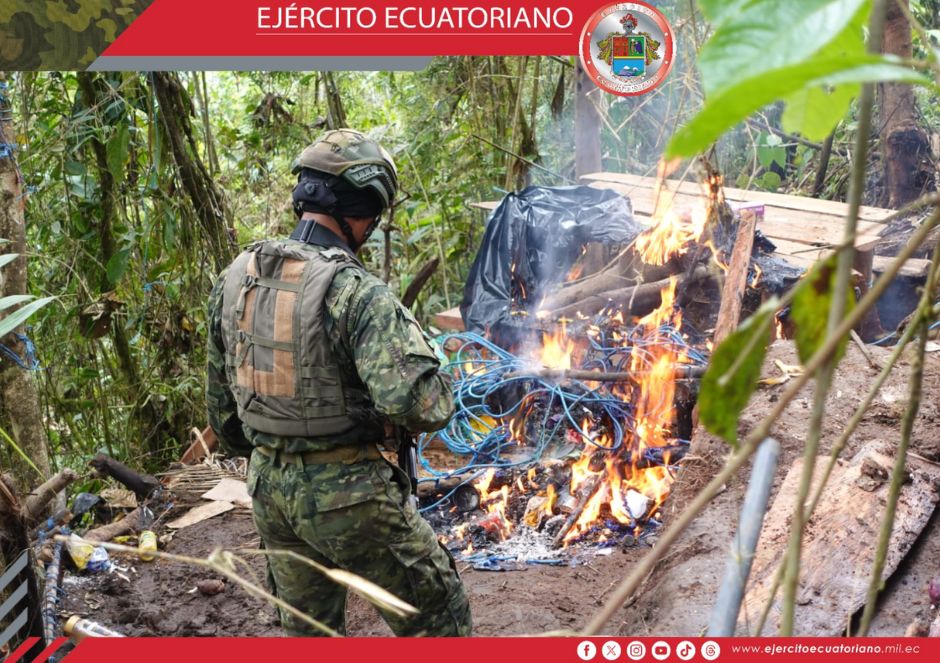 El Ejército Ecuatoriano en coordinación con entidades del Estado inhabilitaron en el sector El Pablo, parroquia El Chical, cantón Tulcán, un campamento dedicado a la minería...