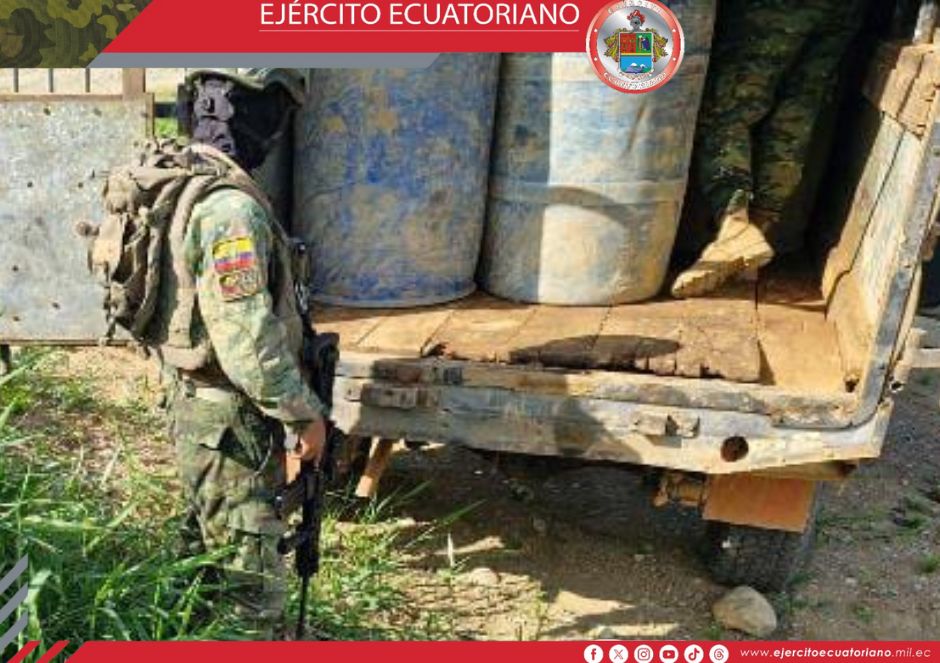 La Fuerza de Tarea Conjunta Esmeraldas realizando operaciones militares en el sector Corriente Larga, cantón San Lorenzo localizó un vehículo abandonado con tanques de 55 galones...