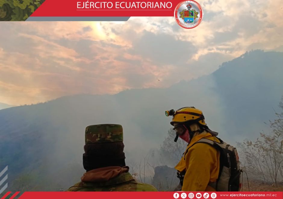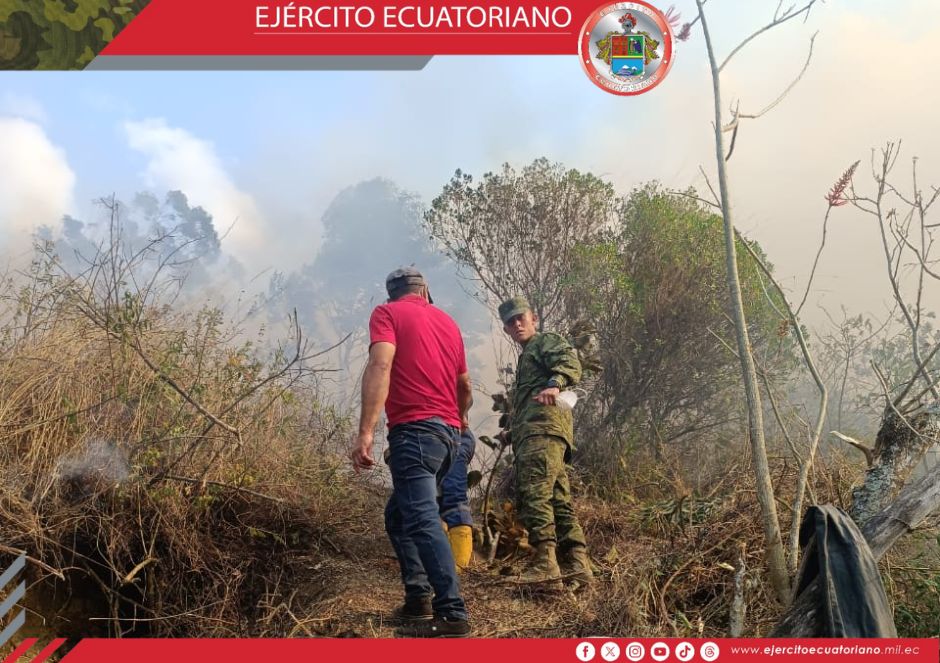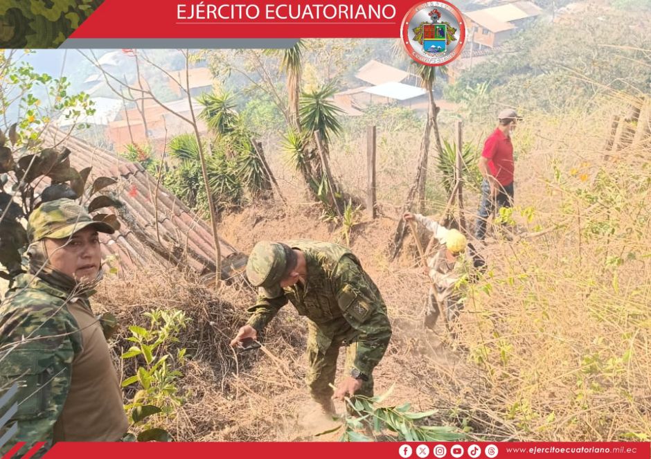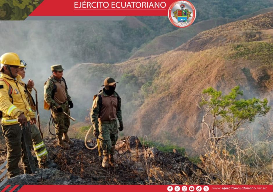 Personal de la Brigada de Infantería N.º 7 Loja colaboró activamente en la sofocación de los incendios producidos en el sector de San Antonio de las Aradas del cantón Quilanga,...
