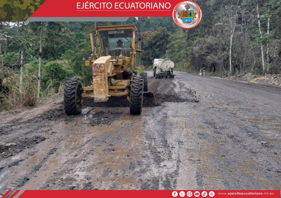 El Cuerpo de Ingenieros del Ejército, a través del Grupo Militar de Trabajo Montúfar, atiende de manera urgente 32 puntos críticos en la vía E20 (Quinindé - Esmeraldas) y 12...