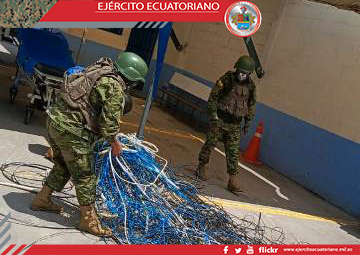Personal de la Brigada de Infantería Motorizada N.º 1 El Oro verificó el tendido eléctrico en el Centro de Privación de Libertad El Oro N.° 1, después de la revisión los...