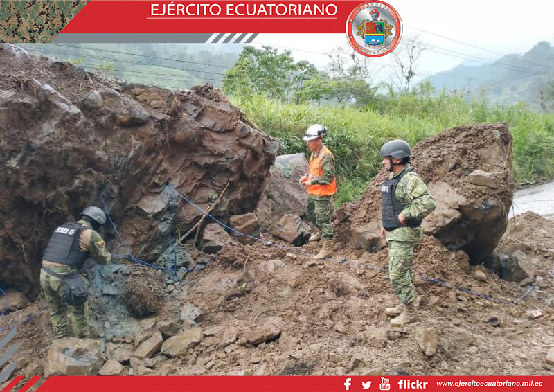 El Cuerpo de Ingenieros del Ejército realizó detonaciones de carga masiva de explosivos en el km 84 de la vía Alóag-Santo Domingo, mediante operaciones militares de ingeniería,...