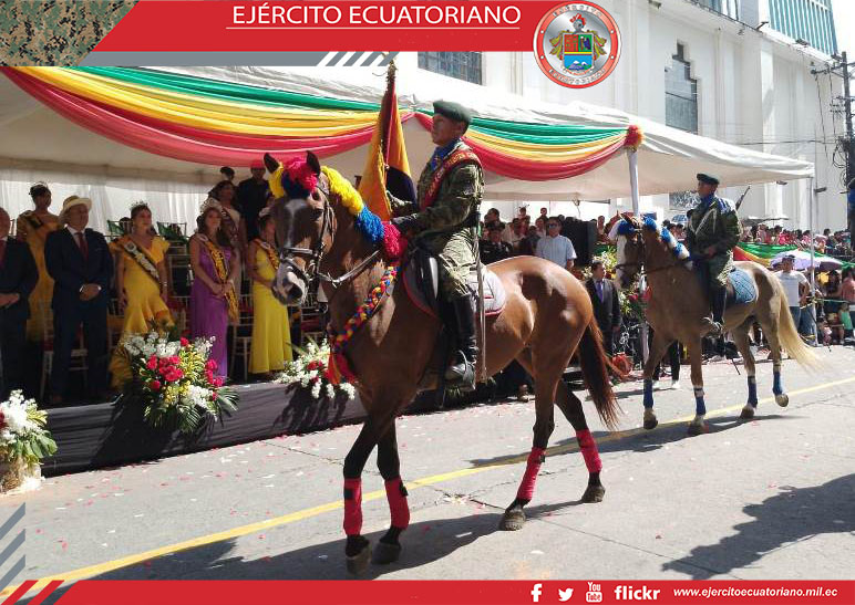 Soldados del Grupo de Caballería Blindada N.° 4 Febres Cordero, participaron en el desfile cívico militar por conmemorar el Octagésimo Tercer aniversario de Emancipación Política...