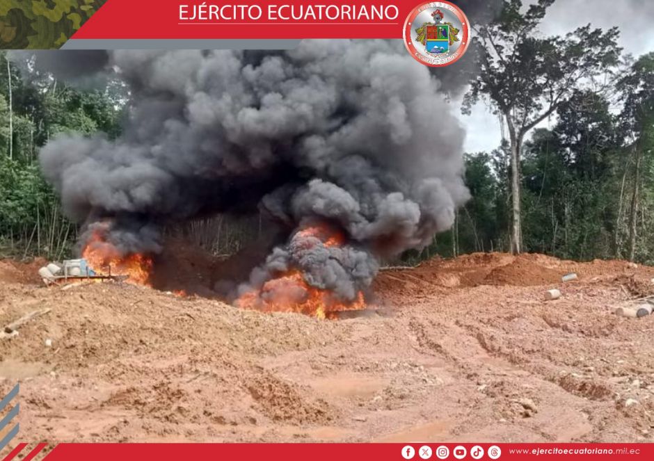 Personal del Ejército Ecuatoriano continúa desplegado en la zona de Alto Punino, intensificando las operaciones de patrullaje y rastrillaje para desarticular estructuras ilegales...