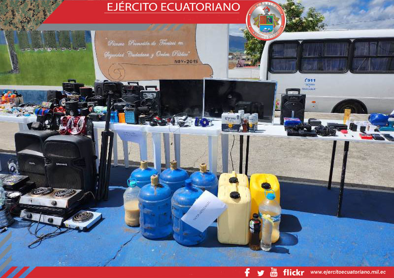 Miembros del Ejército Ecuatoriano, junto con personal de la Agencia de Regulación y Control de Energía y Recursos Naturales no Renovables (ARCERNNR) y la Policía Nacional...