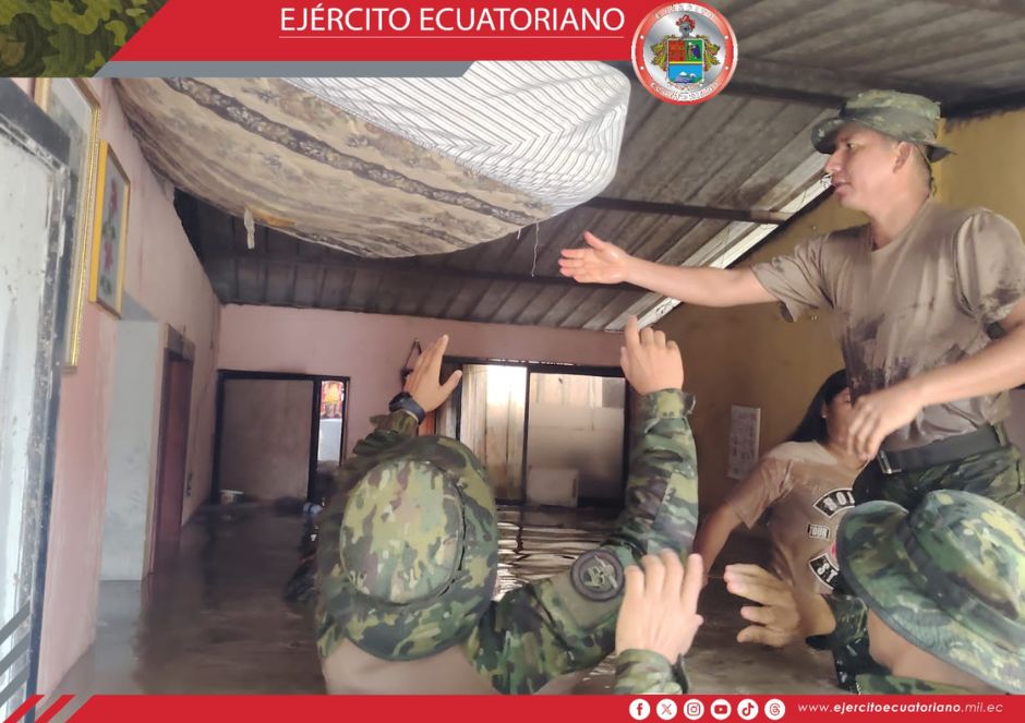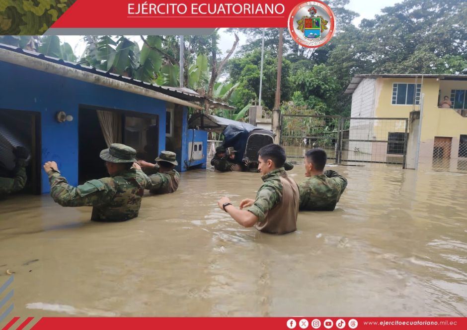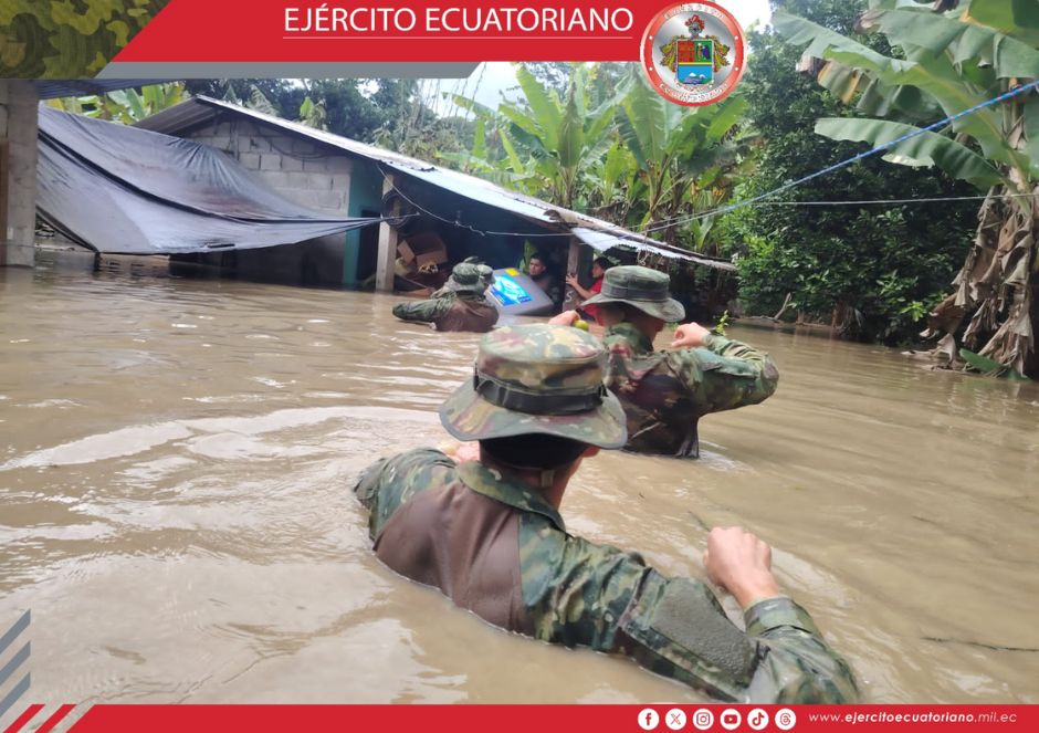 En respuesta a la emergencia provocada por el desborde del río Zamora, el personal del Ejército Ecuatoriano se encuentra brindando asistencia continua a las familias del sector...