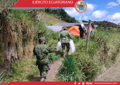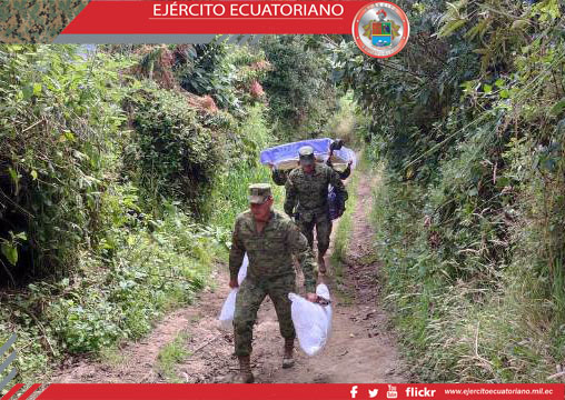 En la provincia del Carchi, en el sector de La Libertad, cantón Espejo, personal militar del Batallón de Infantería N.° 39 Mayor Galo Molina, en apoyo al Servicio Nacional de...