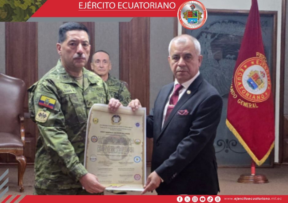 En el Salón de Honor de la Comandancia General del Ejército, las Unidades Honoríficas del Ejército Ecuatoriano presentaron un saludo protocolar al general de brigada Henry...
