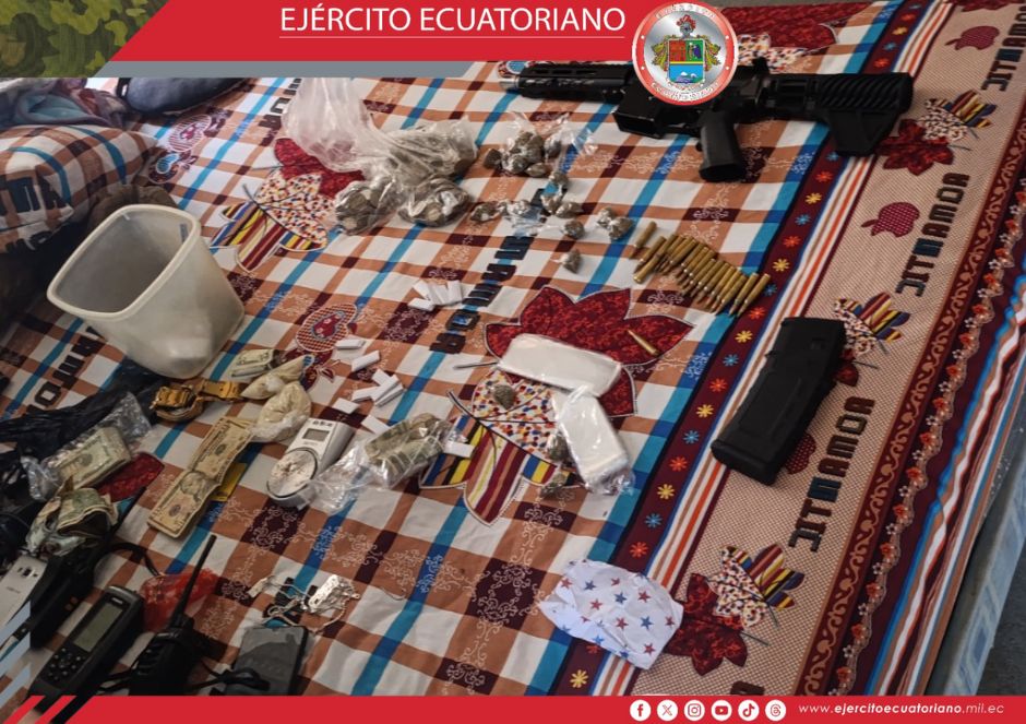 El Ejército Ecuatoriano y otras entidades del Estado realizaron el allanamiento de cinco viviendas en la parroquia Cojimíes, cantón Pedernales, donde decomisaron: