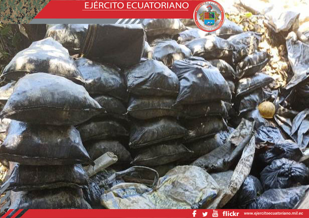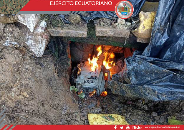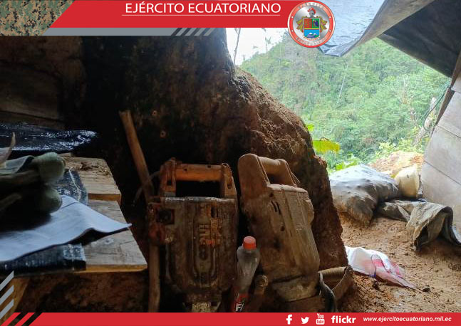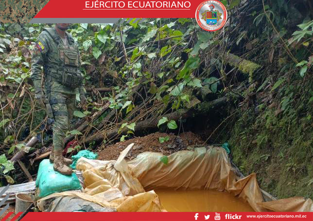 Personal del Grupo de Caballería Mecanizada N.º 36 Yaguachi durante una operación de reconocimiento y vigilancia en la zona minera norte, en el cantón Urcuquí, parroquia Buenos...