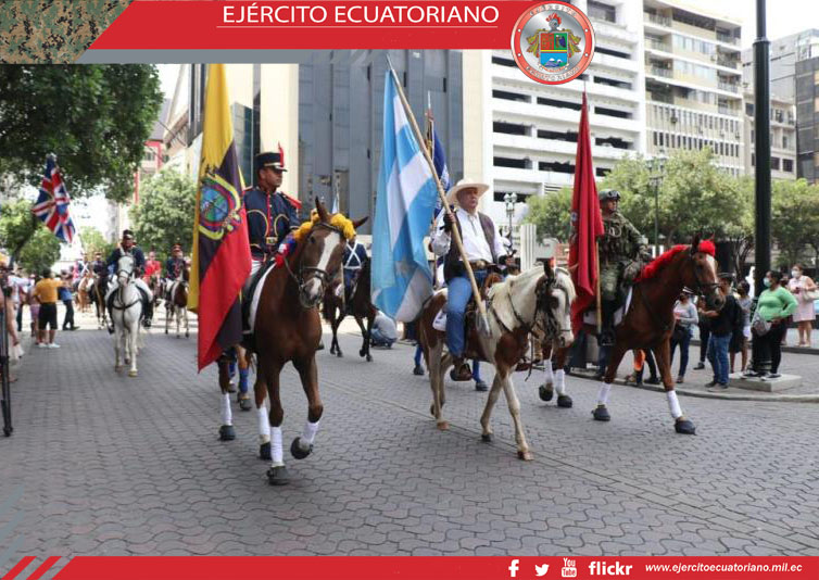 El Hemiciclo de la Rotonda, en la ciudad de Guayaquil, fue el escenario donde inició la gran Cabalgata Bicentenaria del Ejército Patriota.