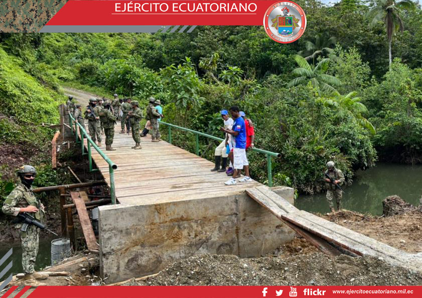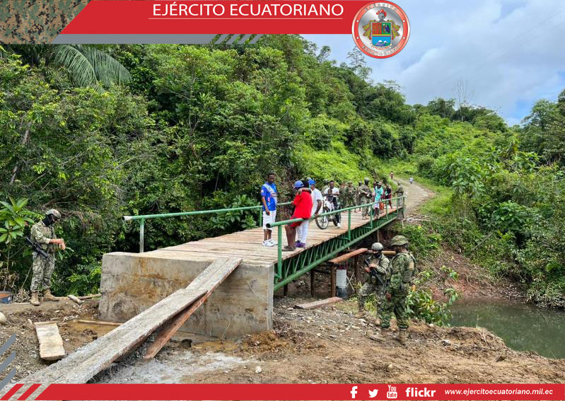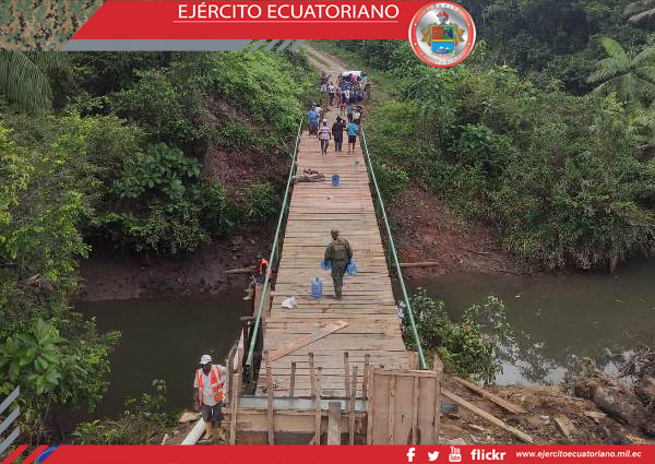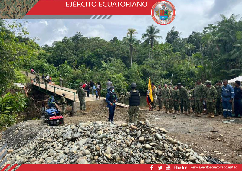 El Cuerpo de Ingenieros del Ejército, a través del Batallón de Ingenieros N.º 68 Cotopaxi, colocaron un puente de circunstancia tipo celosía (fabricado con tubos metálicos) con...