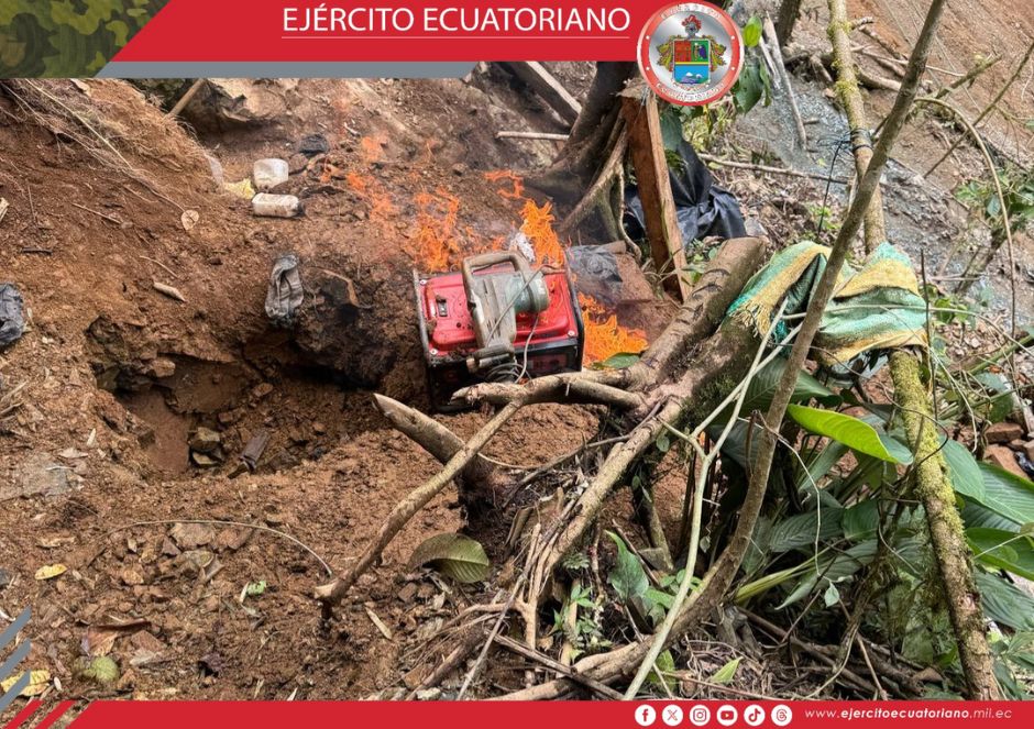 Efectivos del Ejército Ecuatoriano, en coordinación con la Agencia de Regulación y Control Minero (Arcom) ejecutaron operaciones contra la minería ilegal en el sector El Pablo,...