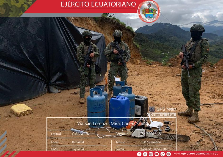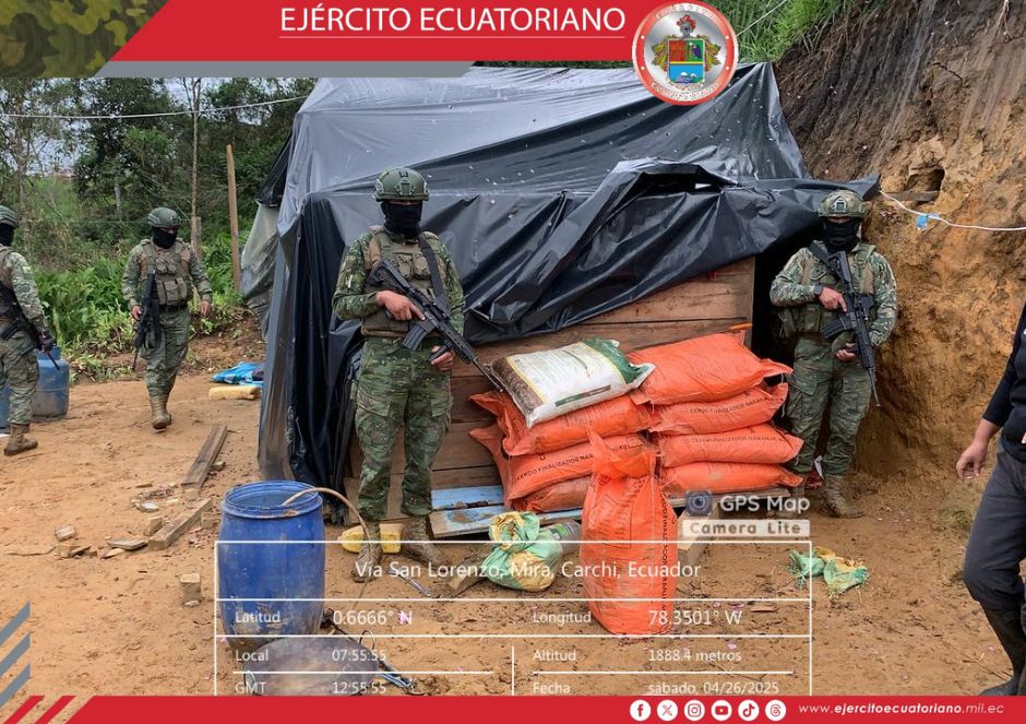 En el marco de las operaciones militares que ejecuta el Ejército Ecuatoriano para combatir actividades ilícitas en el territorio nacional, durante patrullajes a pie y sobrevuelos...