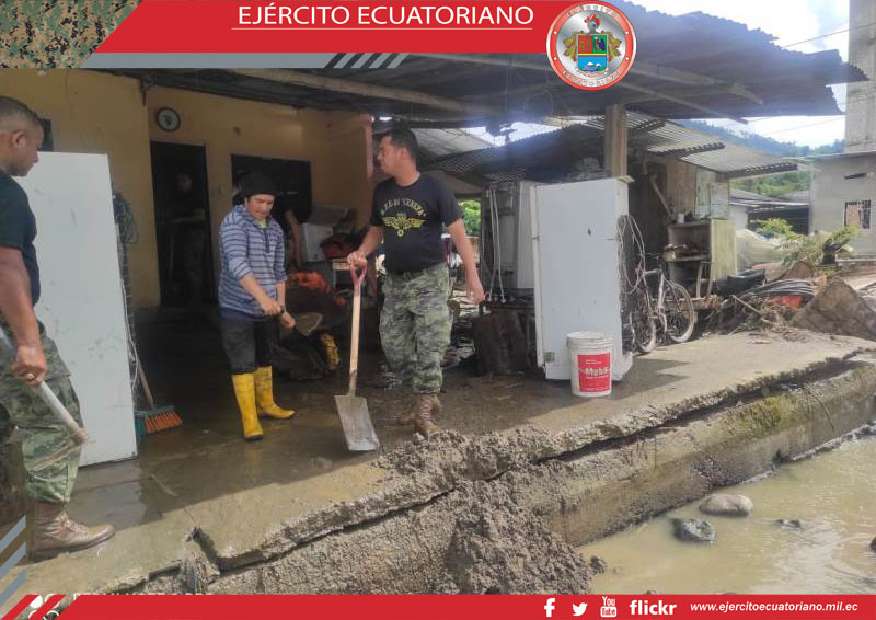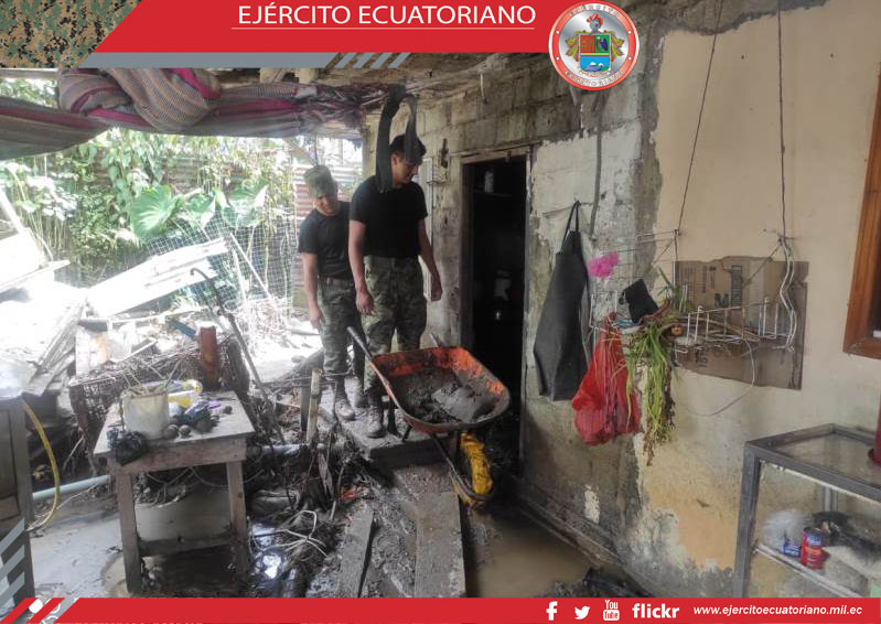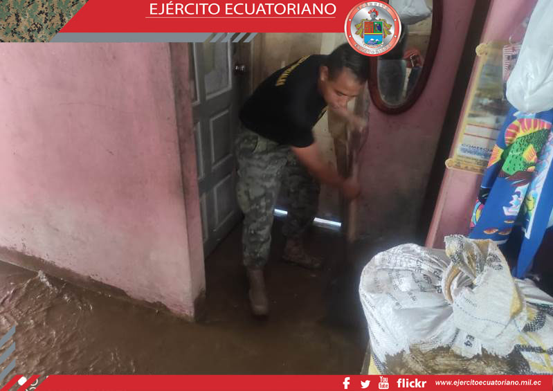 Nuevamente las lluvias provocaron el desbordamiento del río Quindigua y la inundación de este poblado de la provincia de Cotopaxi. Personal del Grupo de Fuerzas Especiales N.° 26...
