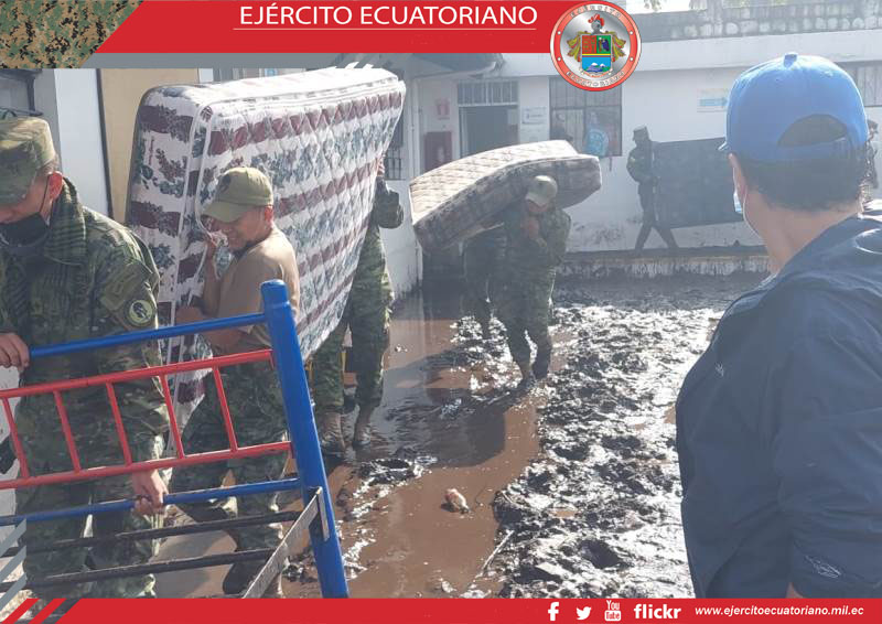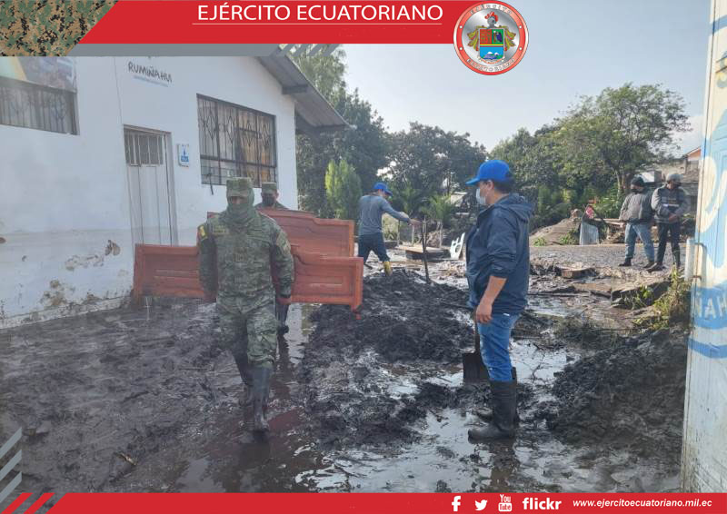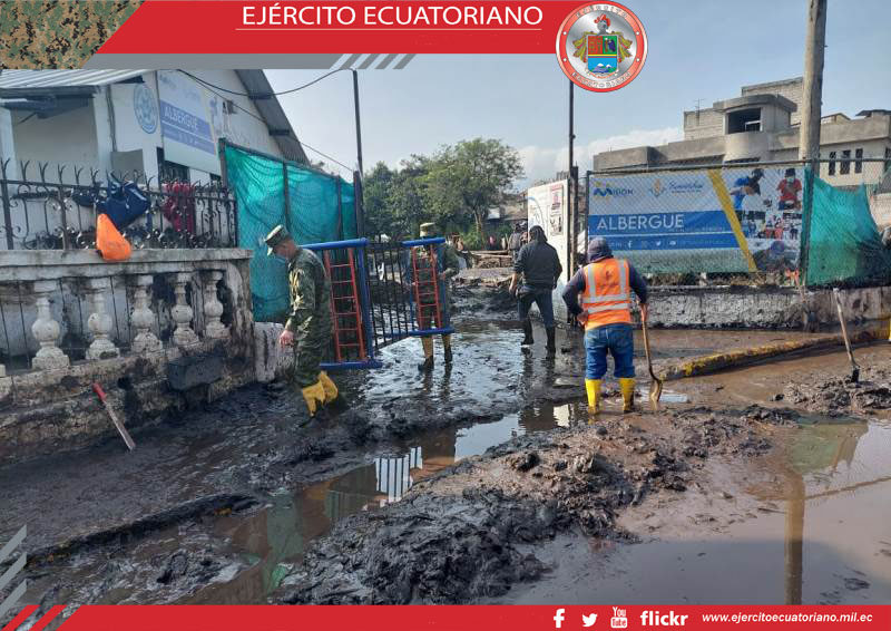 La Brigada de Infantería N.° 13 Pichincha está colaborando con la población afectada por las fuertes lluvias del jueves 17 de febrero en el cantón Rumiñahui, el personal militar...