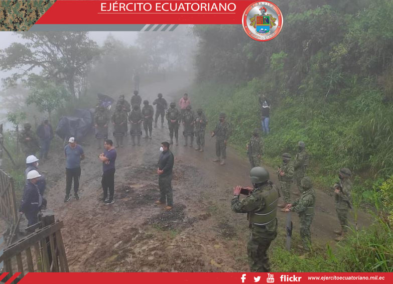 En el sector de La Y de la Esperanza, en la parroquia Chical, cantón Tulcán, efectivos del Batallón de Infantería N.° 39 Mayor Galo Molina, durante una operación militar de...
