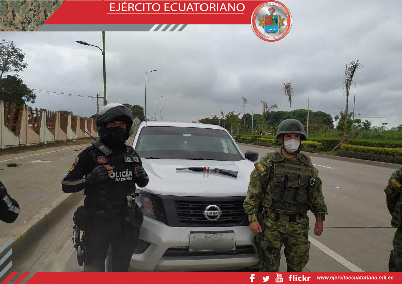 Personal del Batallón de Infantería N.º 1 Constitución, mientras realizaba operaciones militares de control de armas munición y explosivos en el cantón Machala, frente al sector...