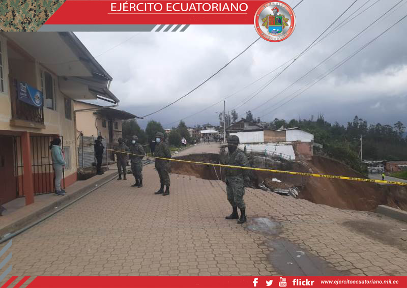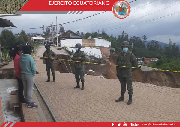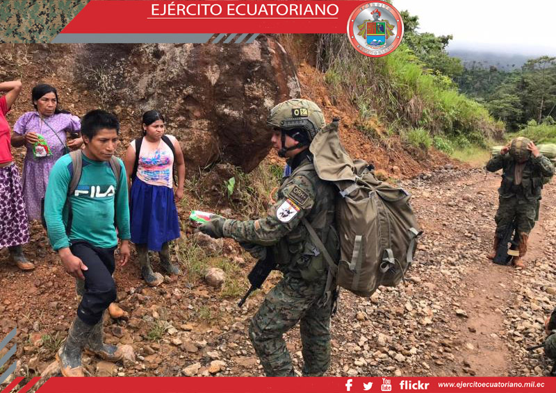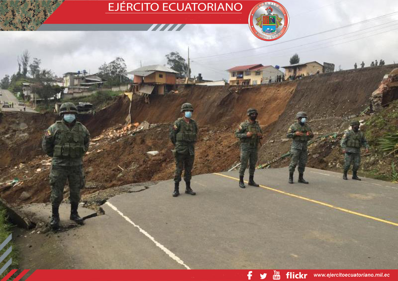Personal de la Brigada de Caballería Blindada N.° 11 Galápagos, en apoyo al Servicio Nacional de Gestión de Riesgos y Emergencias, realiza operaciones de seguridad y ayuda ante...