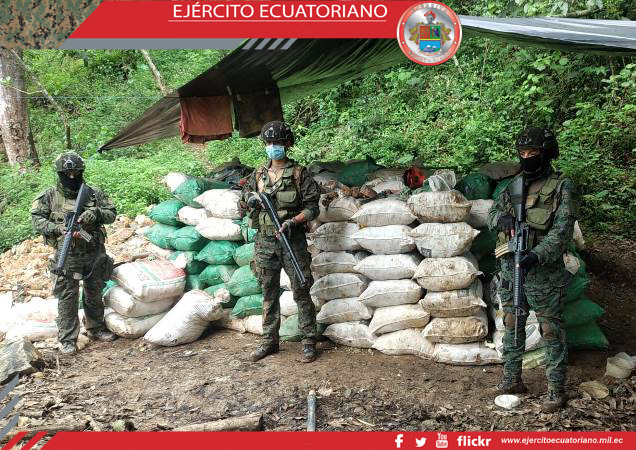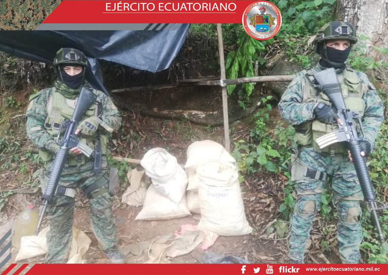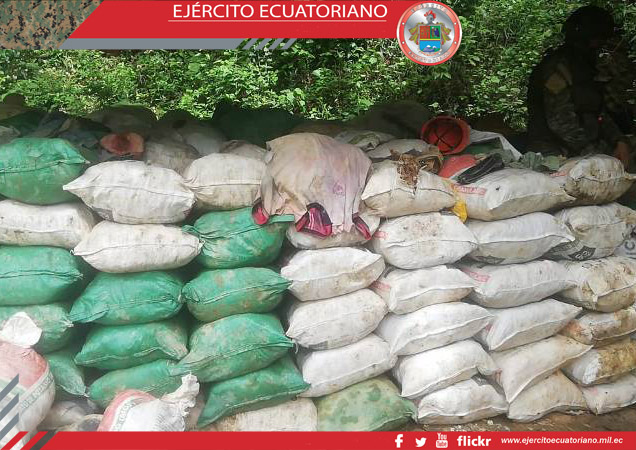 Personal de la Brigada de Infantería Motorizada N.º 1 El Oro y del Grupo de Reconocimiento de la Tercera División de Ejército Tarqui (Recon) encontraron aproximadamente 400 sacos...