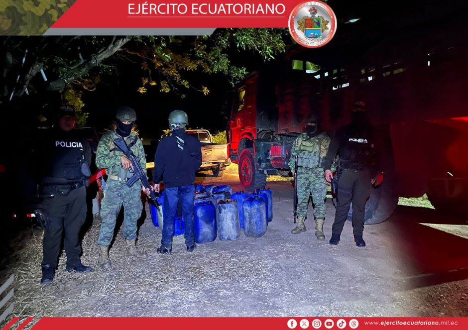 El Ejército Ecuatoriano en el cantón Zapotillo decomisó un importante cargamento de combustible en el sector de Achotes, ubicado en el Límite Político Internacional.