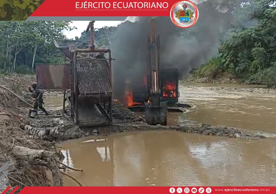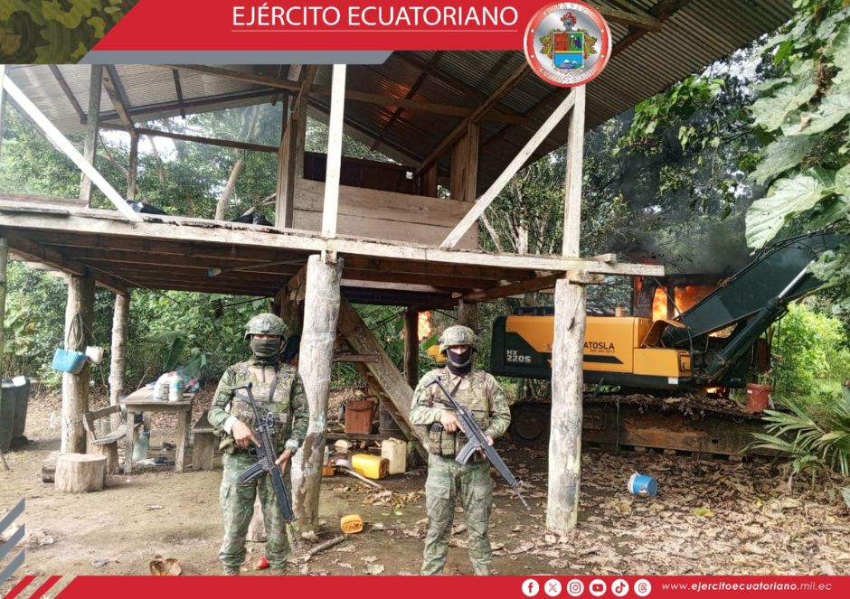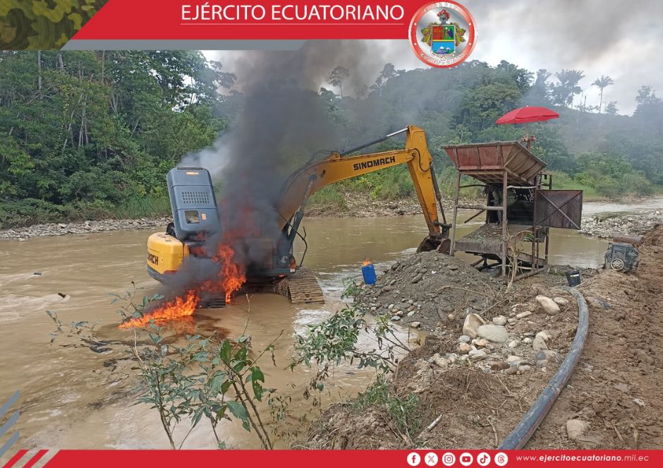 Efectivos del Ejército Ecuatoriano ejecutó operaciones contra la minería ilegal en el sector El Pablo cantón Tulcán, en el sitio fue localizado un campamento y varios artículos...