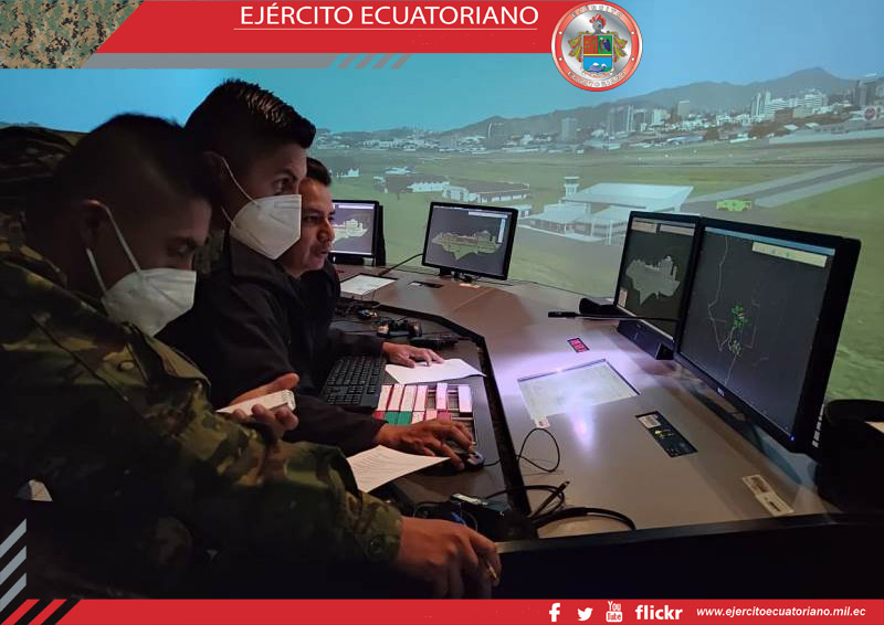 Los cadetes de la sección de Aviación del Ejército de la Escuela Superior Militar Eloy Alfaro se capacitan en la Escuela Técnica de Aviación Civil (ETAC) en procedimientos de...