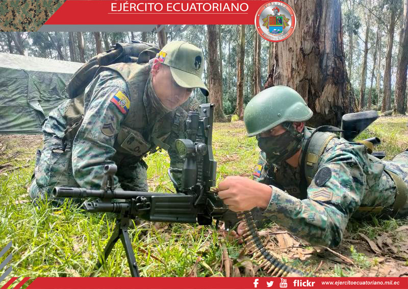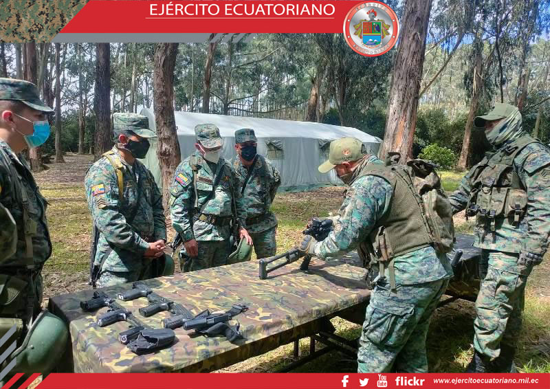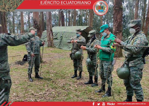Instructores de la Compañía de Combate Urbano del Batallón de Infantería Motorizado N.° 38 Ambato, imparten instrucción de conocimiento del fusil HK 33E, antimotines, cuerdas y...