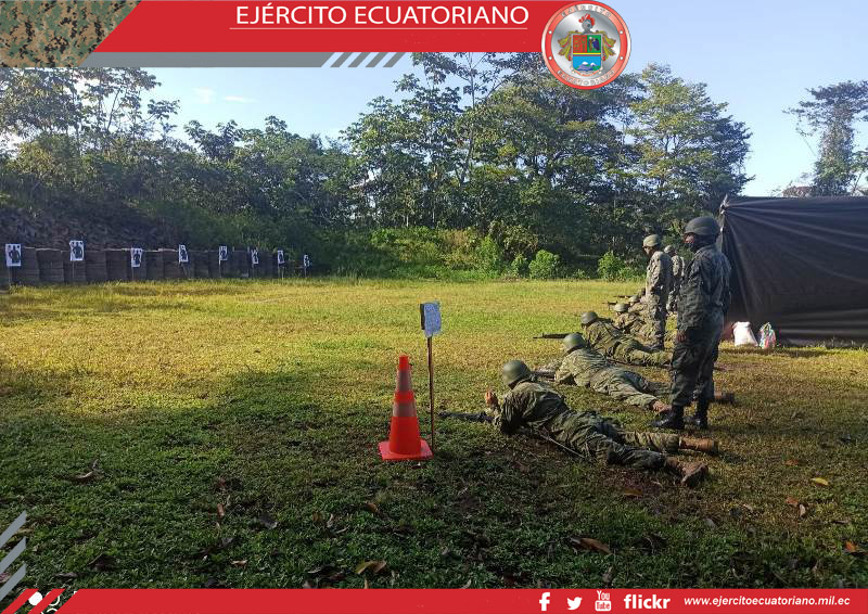 Efectivos de la Brigada de Selva N.⁰ 19 Napo, cumpliendo con las medidas de seguridad y bioseguridad, ejecutan la instrucción de tiro de fusil y pistola, como parte de su...