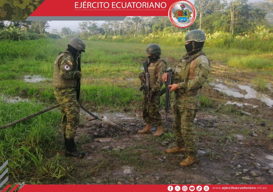 En la región amazónica, integrantes del Ejército Ecuatoriano ejecutaron una operación de seguridad hidrocarburífera en el sector de la vía Primavera Estación Aguarico.