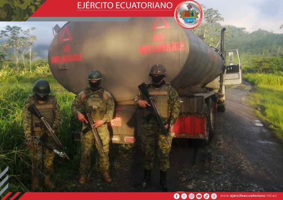 El Ejército Ecuatoriano realizó una operación militar de control hidrocarburífero en el poliducto Esmeraldas-Santo Domingo, sector Viche donde se encontraron 2 vehículos, con una...