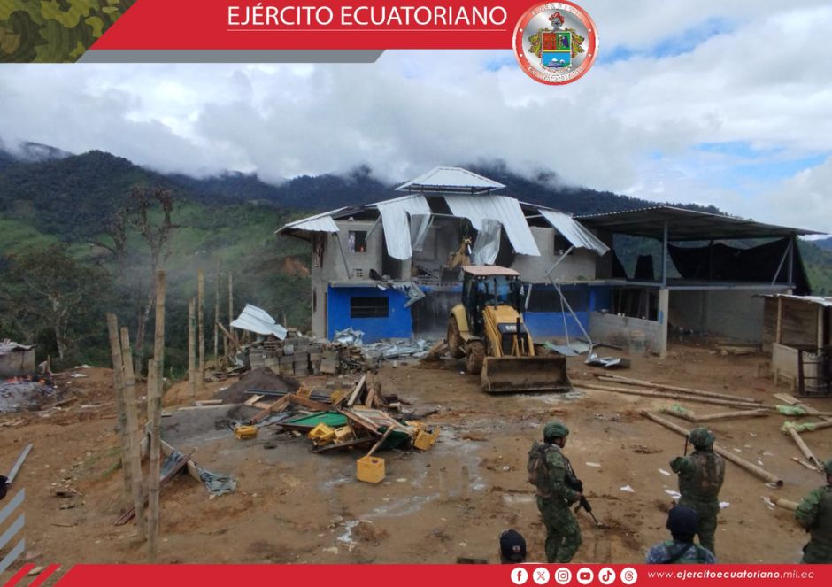 En el sector de Buenos Aires, efectivos del Ejército Ecuatoriano continúan desarrollando operaciones de decomiso de materiales y destrucción de viviendas y asentamientos ilegales...