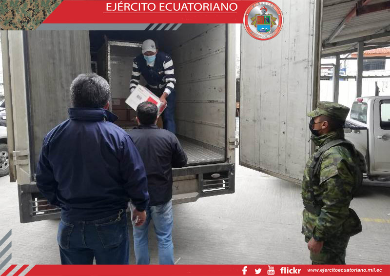 Cumpliendo con todas las medidas de bioseguridad, personal militar del Grupo de Caballería Mecanizada N.° 18 Cazadores de los Ríos, proporcionan seguridad en apoyo al Ministerio...