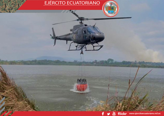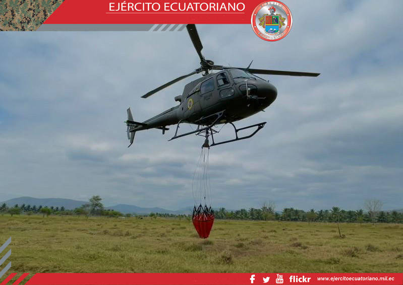 Personal del Grupo de Aviación del Ejército N.º 43 Portoviejo realizó entrenamiento de Bambi Bucket en el sector de Rocafuerte, provincia de Manabí, con el objetivo mantener...