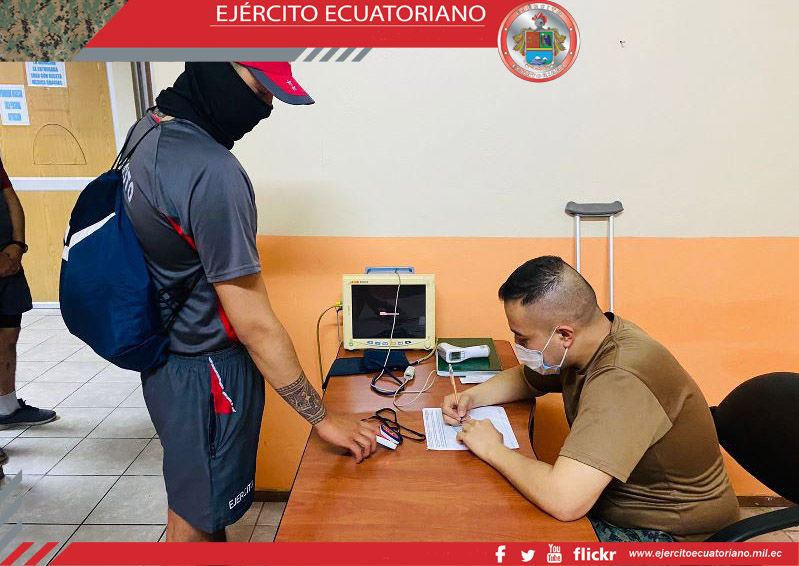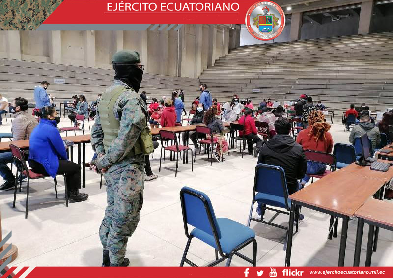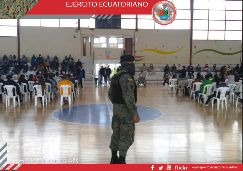 El Grupo de Artillería Lanzadores Múltiples N.° 80 Calderón, en apoyo al Ministerio de Salud de la Zona 6, brinda seguridad durante el proceso de inoculación de 10 296 vacunas de...