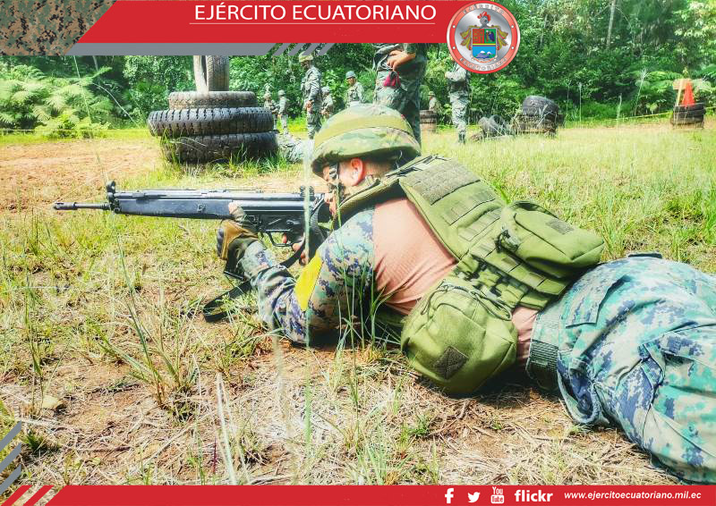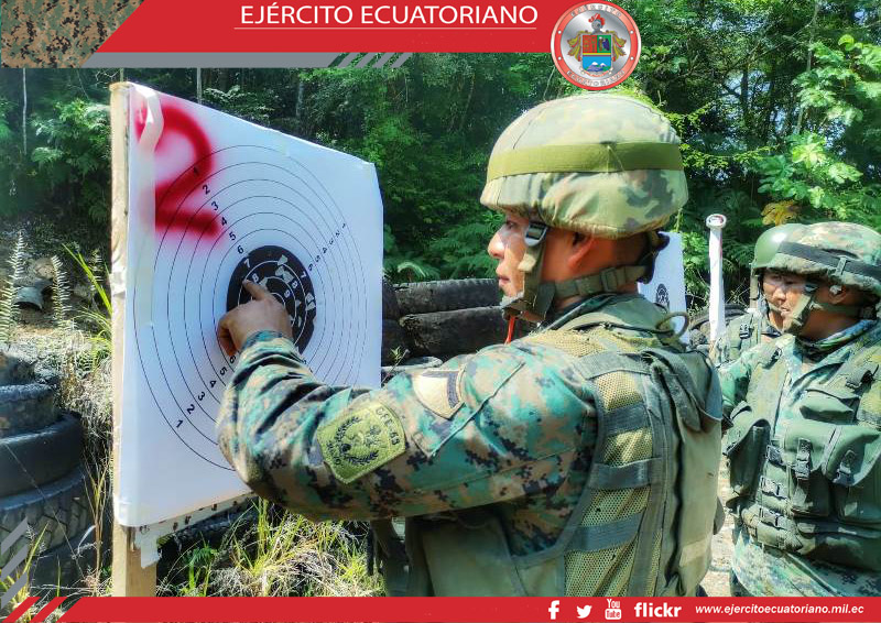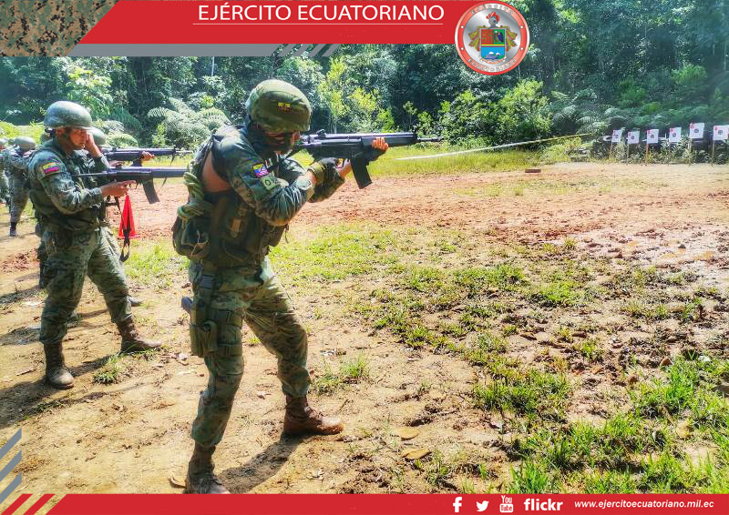 En Sucumbíos, personal del Grupo de Fuerzas Especiales N.º 53 Rayo, dando cumplimiento al Plan de Gestión Operacional, realiza instrucción de tiro con fusil con el personal que...