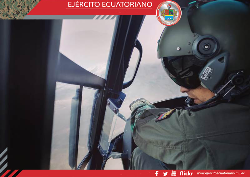 Este jueves 5 de agosto, pilotos y mecánicos de la Brigada de Aviación N.° 15 Paquisha realizan instrucción y entrenamiento de vuelo de montaña en las inmediaciones del volcán...
