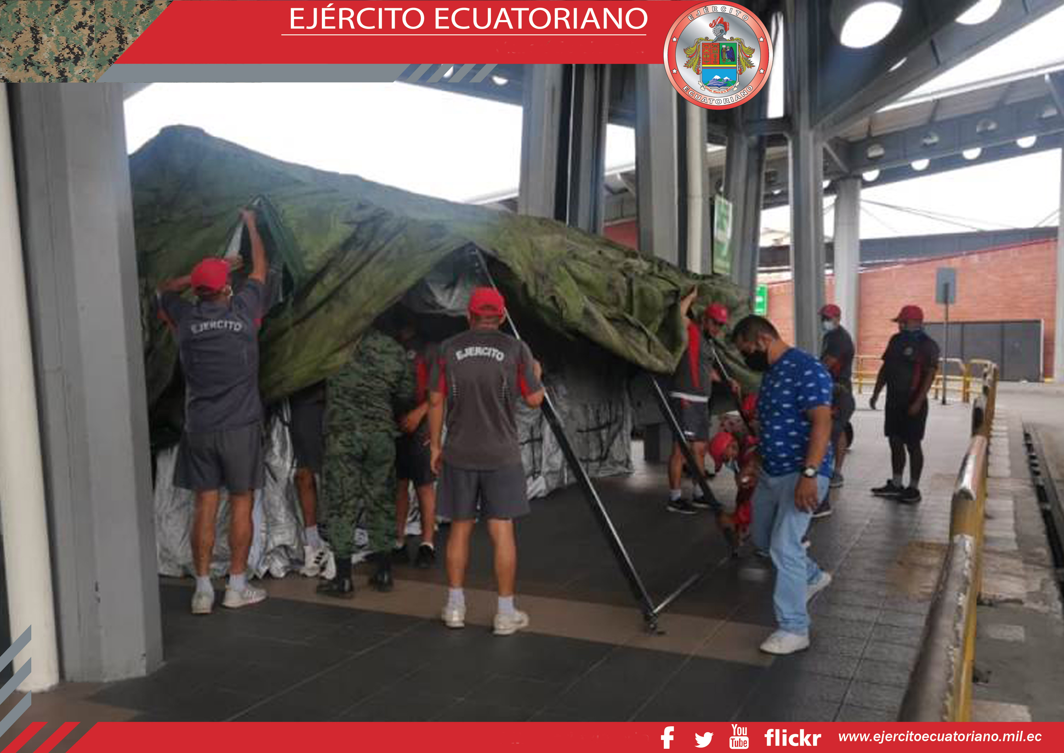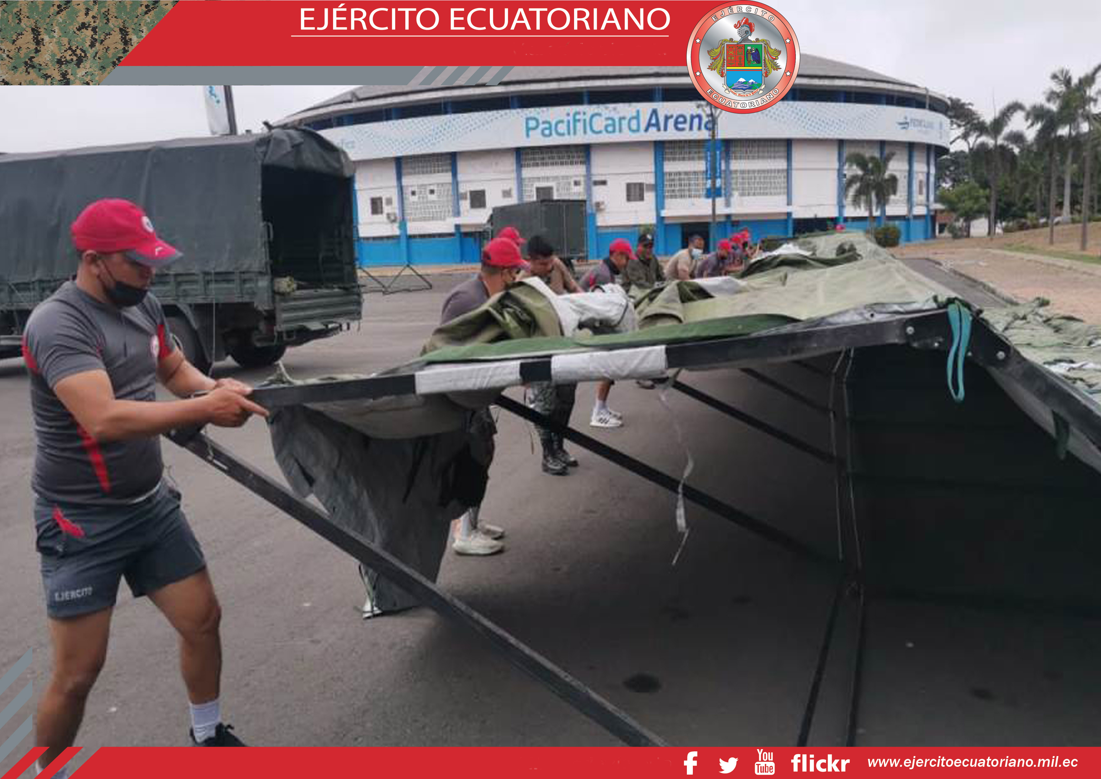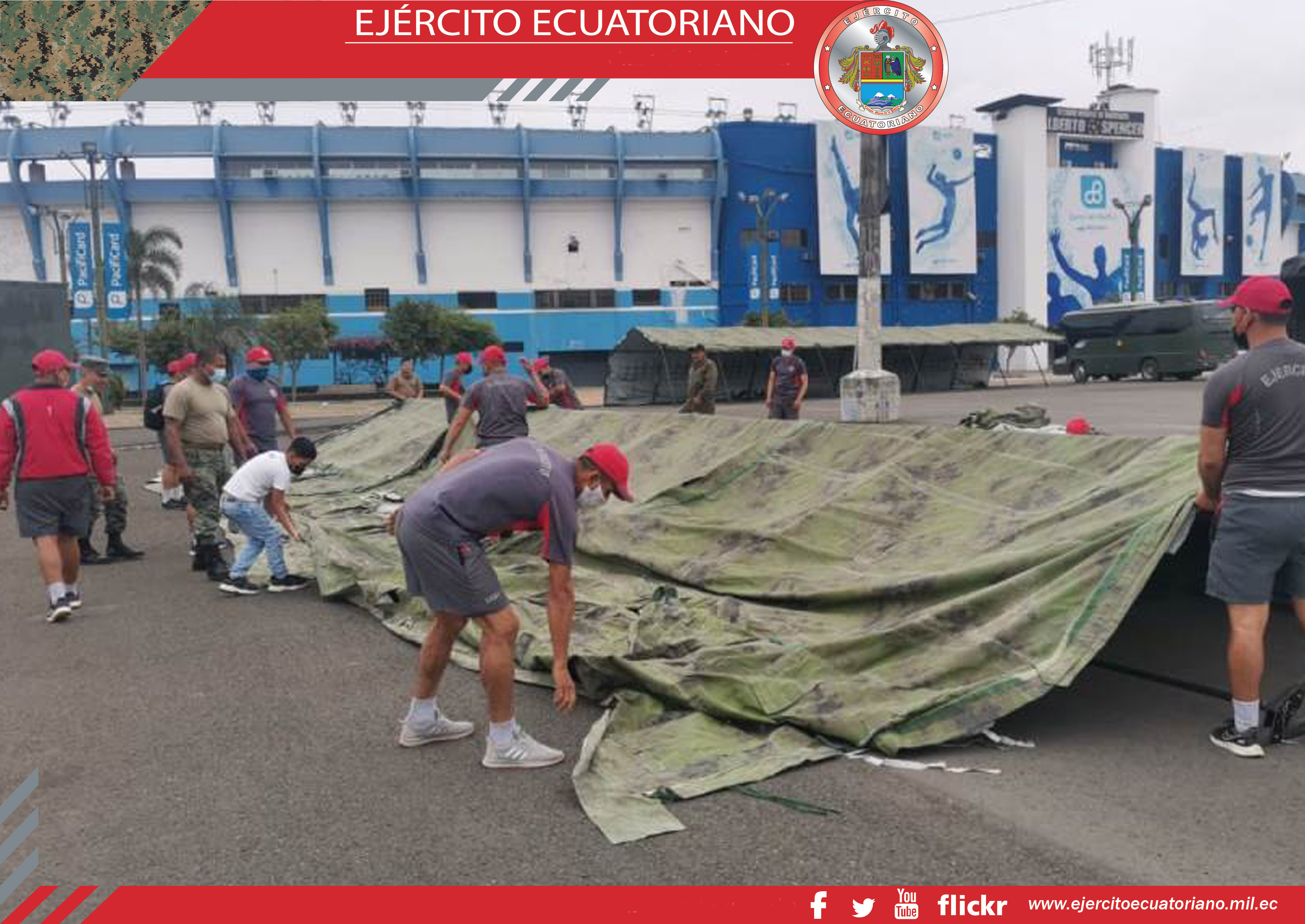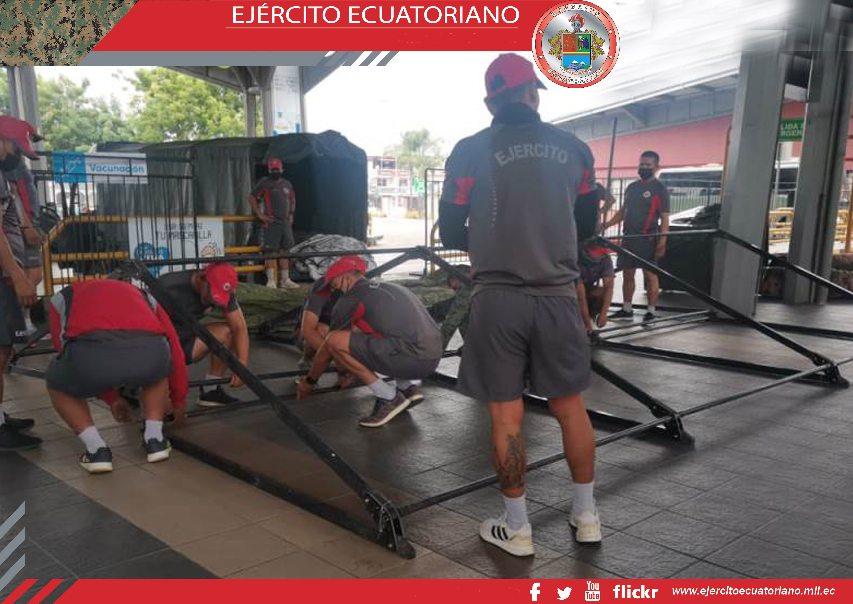 En la ciudad de Guayaquil, el Comando Logístico N.° 74 Huancavilca continúan brindando apoyo y seguridad al Plan de Vacunación 9/100 que lleva a cabo el gobierno nacional.