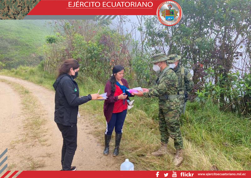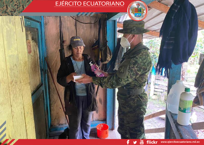 En Chinchipe, personal del Batallón de Selva N.º 17 Zumba, en apoyo al Ministerio de Inclusión Económica y Social (MIES), realizó la entrega de materiales antisépticos con la...
