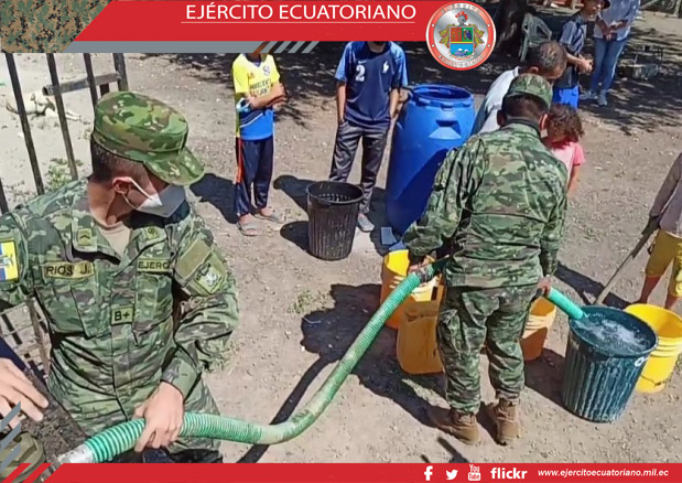 En la provincia de Loja, el Batallón de Infantería N.° 19 Carchi, en apoyo a la Junta parroquial de Garzareal, cantón Zapotillo, realizó la entrega de agua potable en tanqueros...