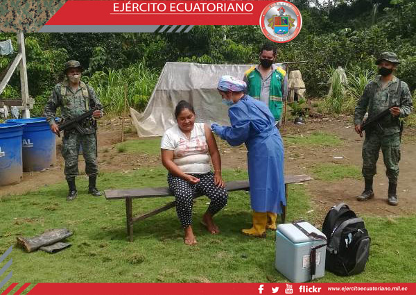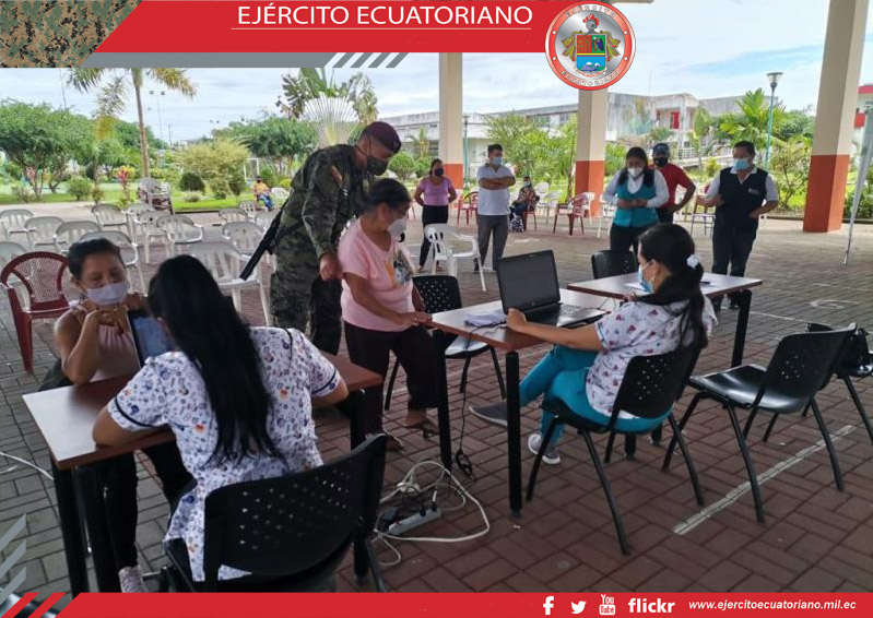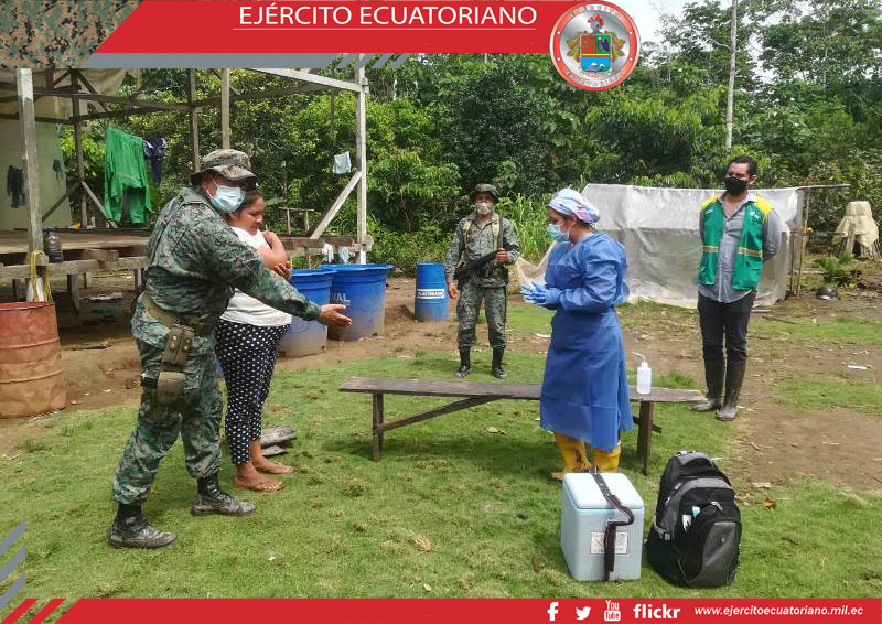 La Brigada de Selva N.° 19 Napo, a través de los soldados del Batallón de Selva N.° 57 Montecristi, cumpliendo con todas las medidas de bioseguridad, brindan seguridad y apoyo al...